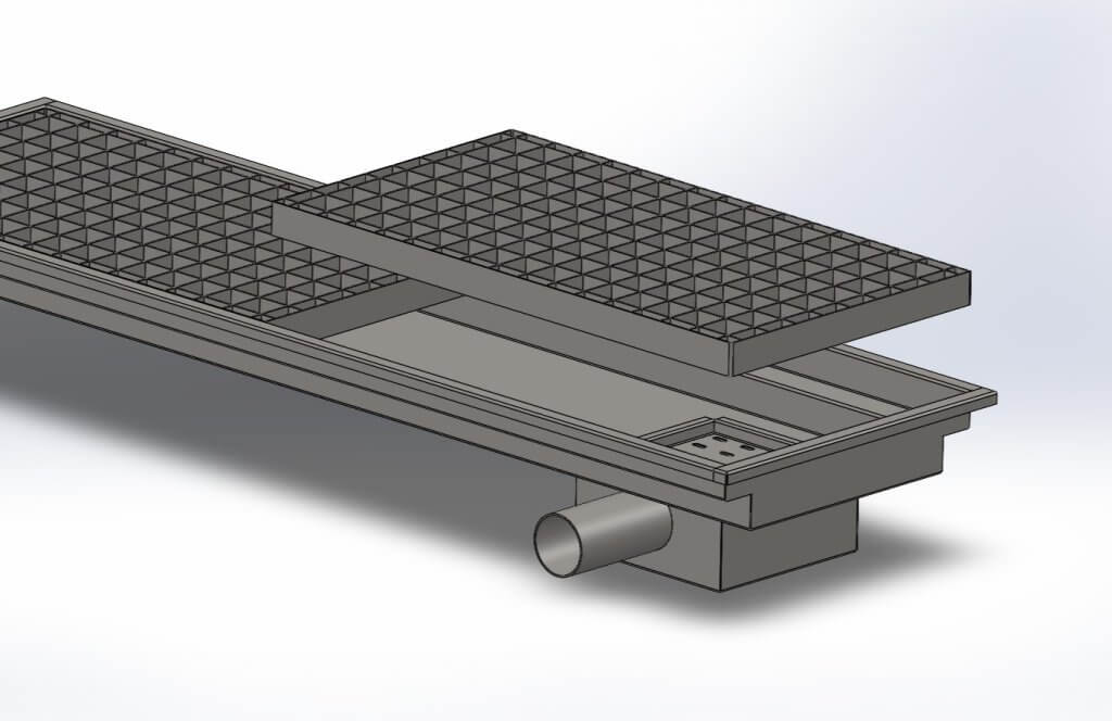 Овој модел на сифон има решеткаст поклопец кој овозможува безбедно газење, стабилност и оптимален проток на вода. Конструкцијата вклучува внатрешен филтер за задржување на нечистотии, што го олеснува одржувањето и спречува затнување на одводниот систем.